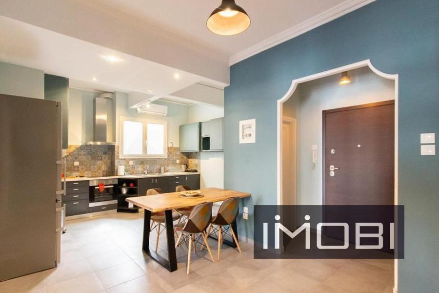 Exarcheia, Apartment,, Sale, 87 sq.m, year built 1973, renovated in 2023, 2 rooms, 6th, Availability: Available, Heating: Air-condition, View: Unobstructed, Condition: Excellent condition, Renovated, Floor type: Tiles, Wood, Window frames: Aluminum, Energy class: E, Zoning: Commercial, Orientation: East, South-east, Position: Dual-aspect, Penthouse, Includes: Bathroom, Double glazing, Elevator, Loft, Security door, Veranda, WC, Suitable for: Investment use, Professional use, Characteristics: Bright, Furnished, Pets allowed. property ID: 977, www.imobi.gr